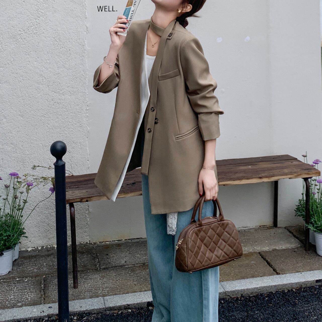 #Vネック #テーラードジャケット #美シルエット #大人カジュアル #配色デザイン #小顔効果