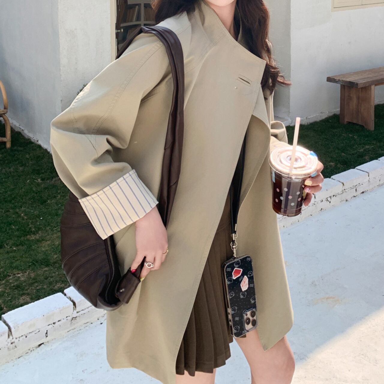 #スタンドカラー #ストライプ裏地 #カジュアルアウター #ゆったりジャケット #着回しアウター