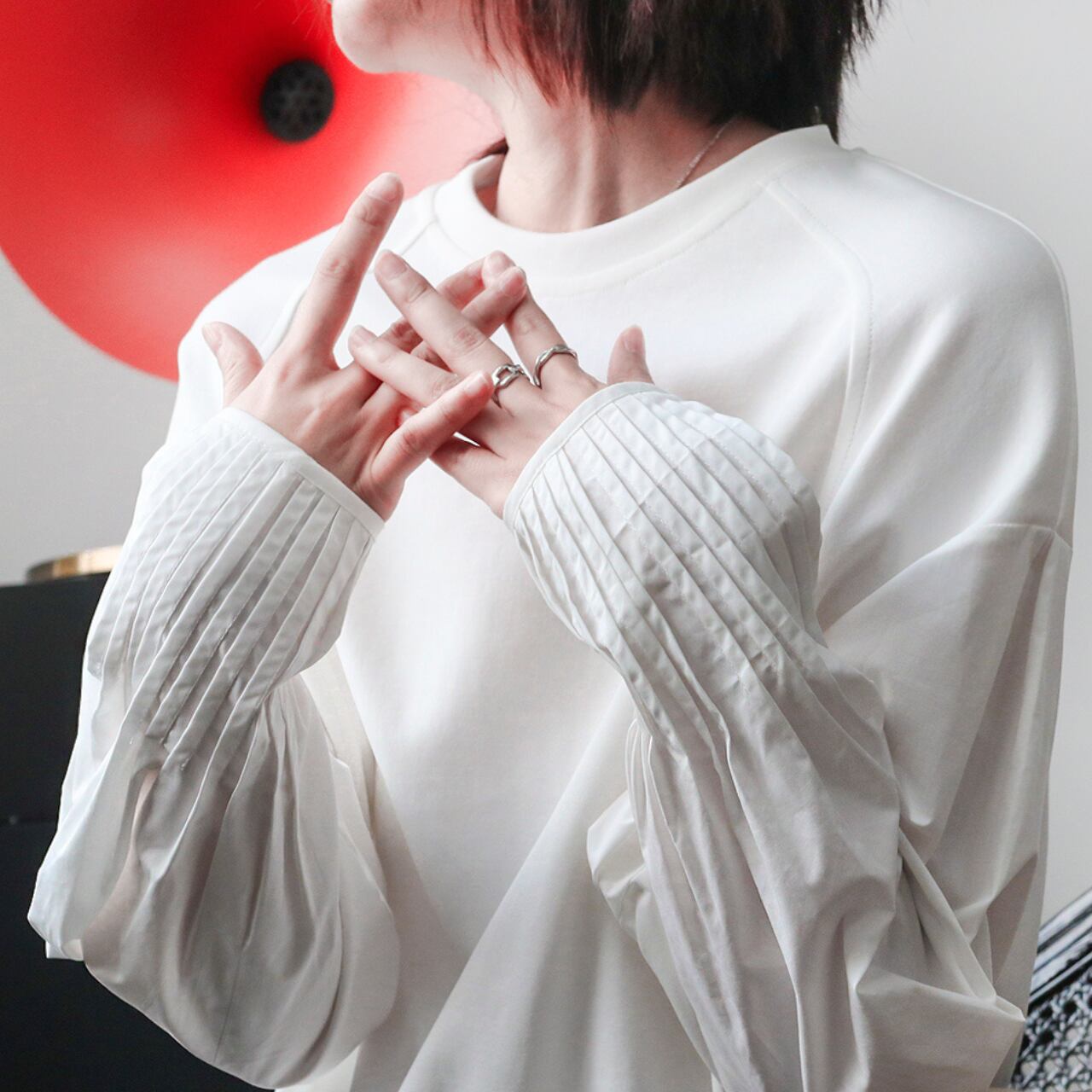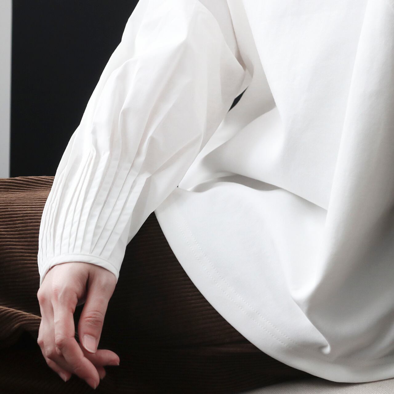 春のスタイルにぴったりなシンプルデザインの長袖トップス。柔らかく肌ざわりの良いコットン素材を使用し、ストレスフリーな着心地を実現。さりげない袖のギャザーがポイントになり、ベーシックながらも洗練された印象を与えてくれます。ラウンドネックの首元はすっきりとした印象で、どんなスタイルにもマッチ。一枚持っておくと重宝する万能トップスです。