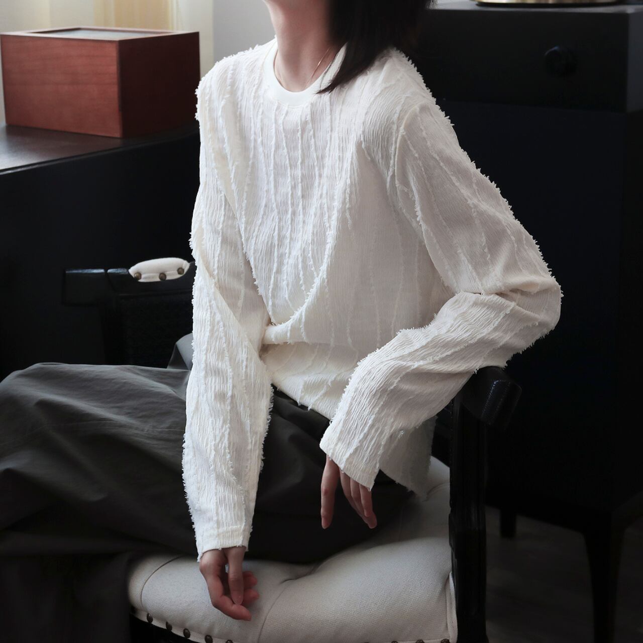 #立体テクスチャ #クルーネック #シンプルトップス #モード系 #きれいめカジュアル #韓国ファッション