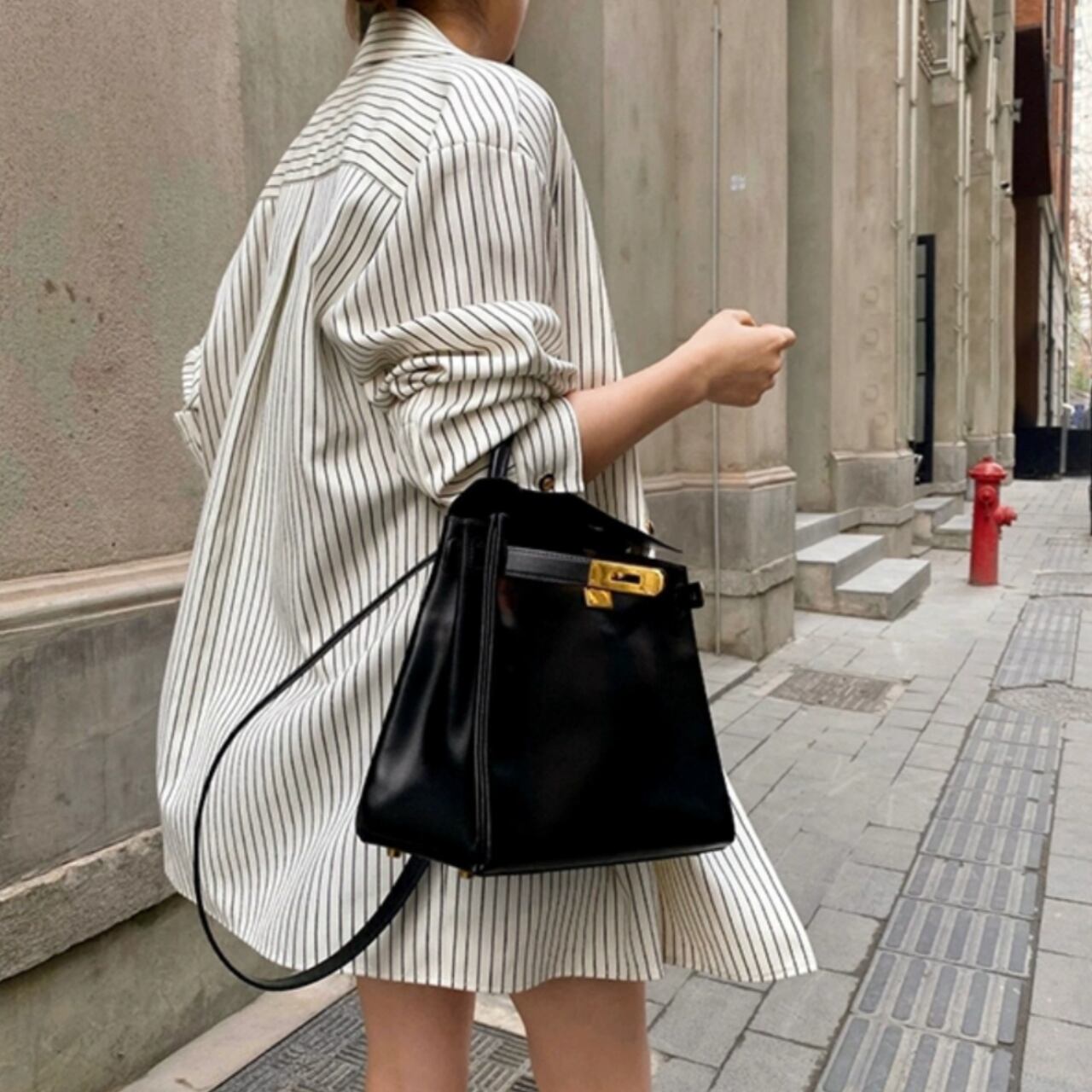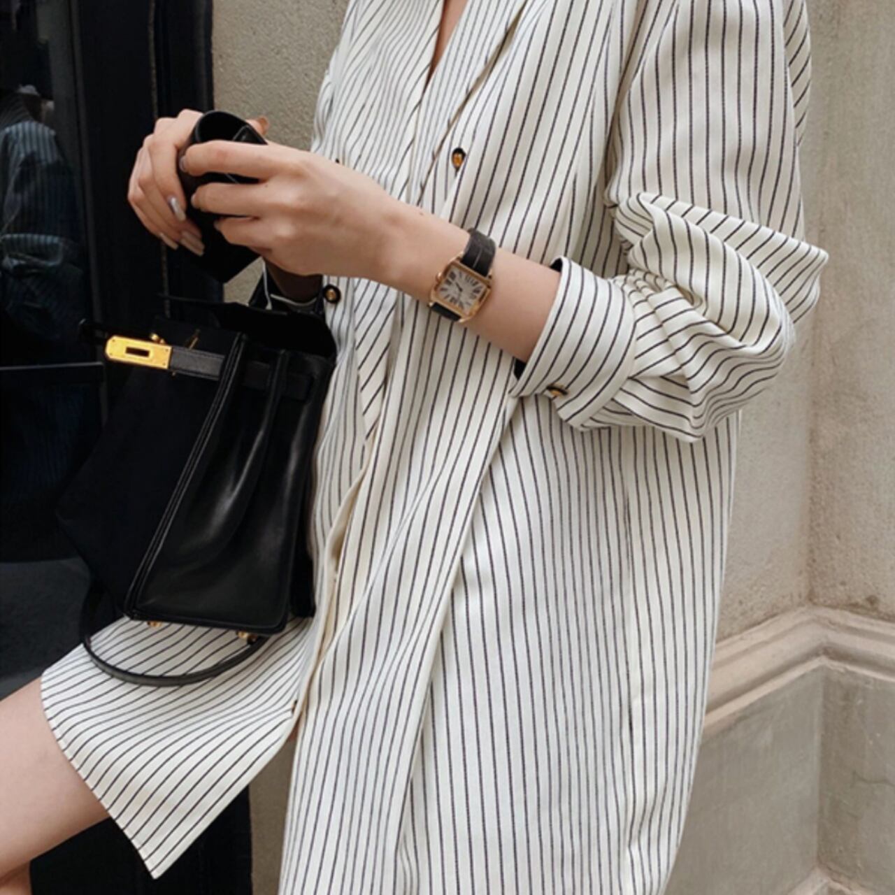 #ストライプ #Vネック #ゆったりシルエット #シャツジャケット #モノトーンコーデ