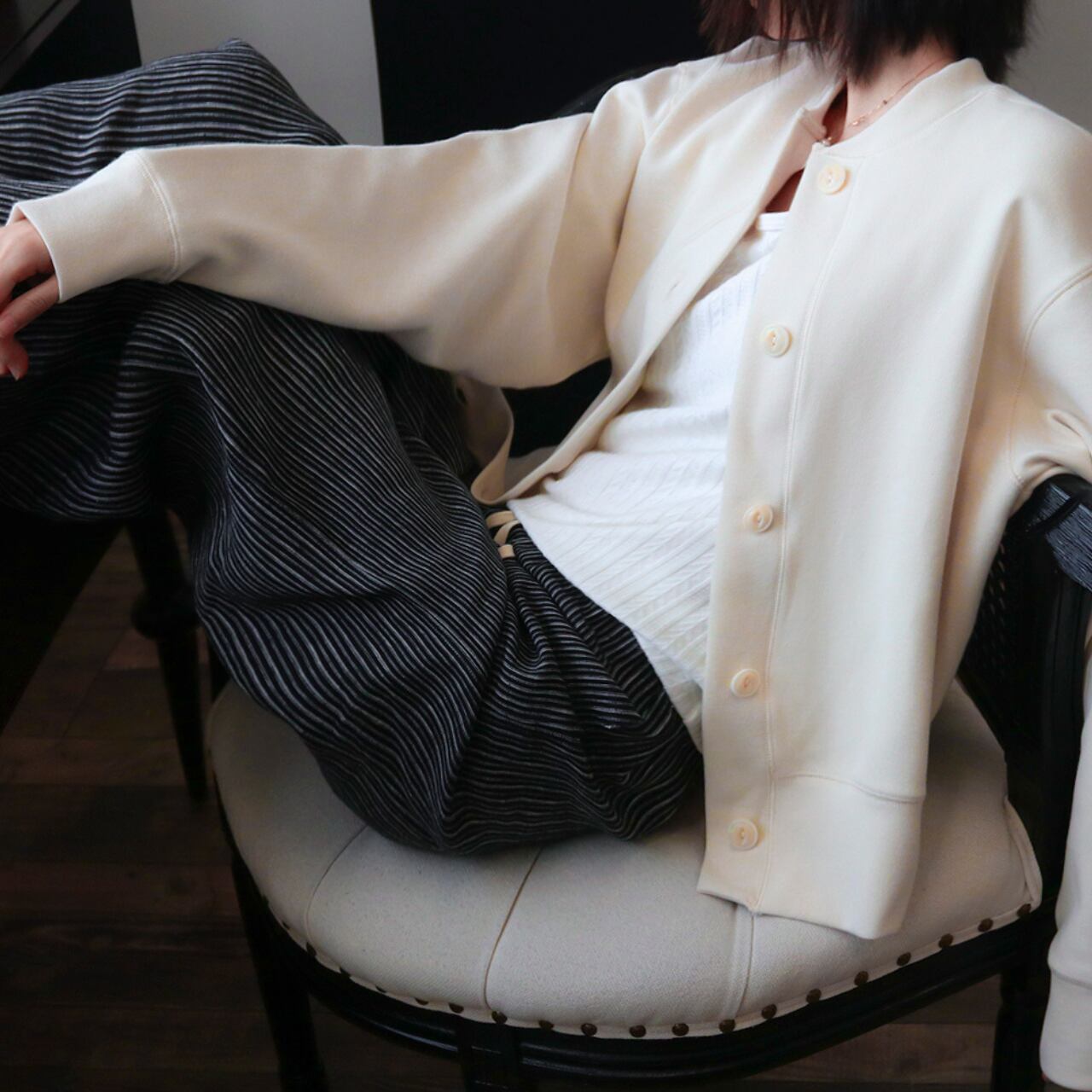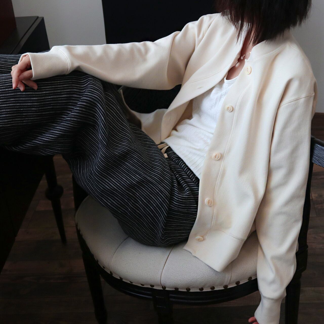 #ノーカラージャケット #ソフトタッチ #ミニマルコーデ #カーディガン感覚 #早秋アウター #上品カジュアル