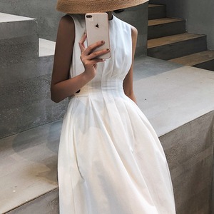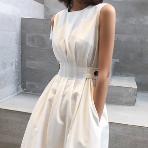 #タックワンピース #ノースリーブ #モノトーンコーデ #夏ワンピ #大人カジュアル #リゾートコーデ