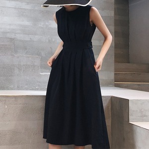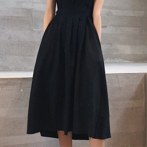 立体感のあるタックデザインが上品さを引き立てるノースリーブワンピース。フロントの縦ラインがすっきりとした印象を与え、ウエストのボタンディテールがアクセントに。裾にかけて自然に広がるフレアシルエットで、動くたびに美しく揺れます。帽子やサンダルと合わせてリゾート風にも、ヒールやジャケットと合わせてフォーマルにも活躍します。
