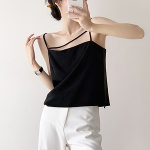エッジの効いた非対称ストラップデザインが魅力のキャミソール。華奢なダブルストラップがデコルテを美しく引き立て、シンプルながらも個性のあるスタイルに。さらりとした生地感で、夏のカジュアルコーデにもぴったり。パンツにもスカートにも合わせやすく、インナー使いにも最適な一枚です。
