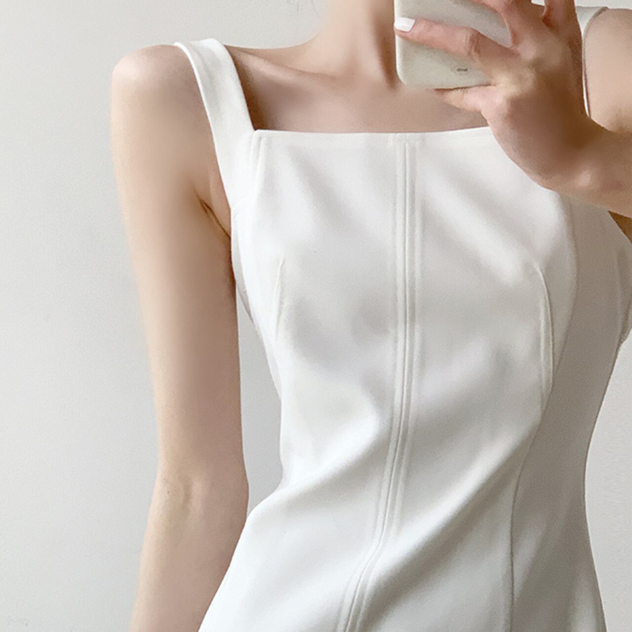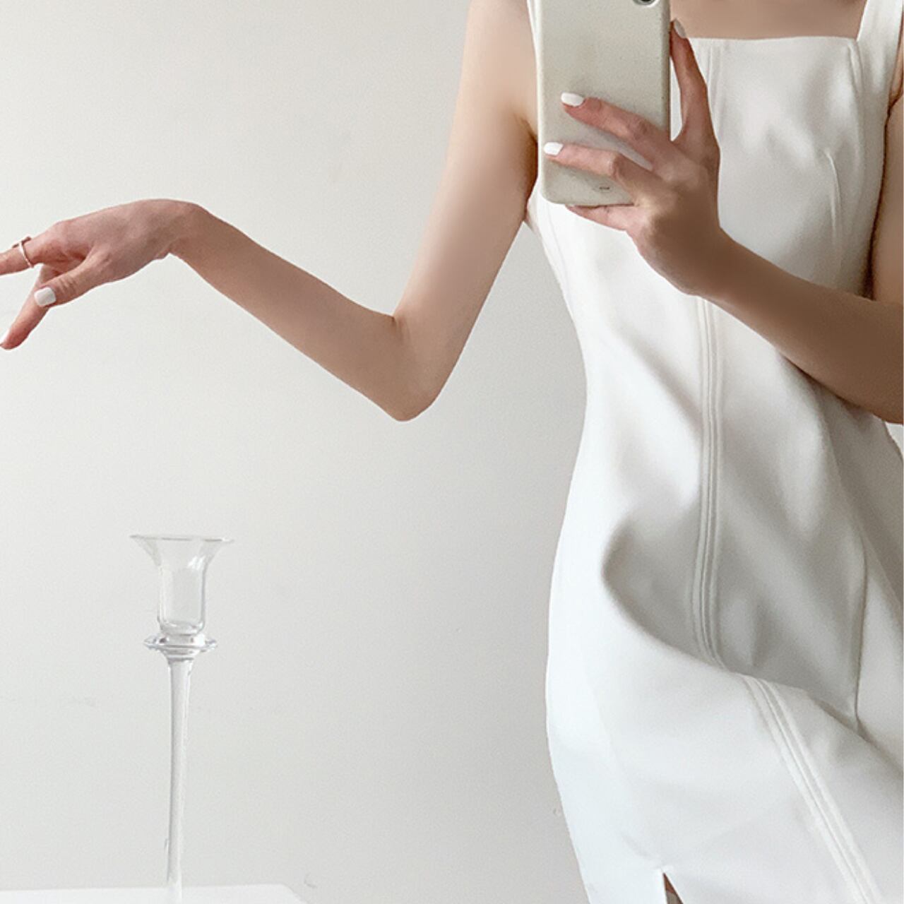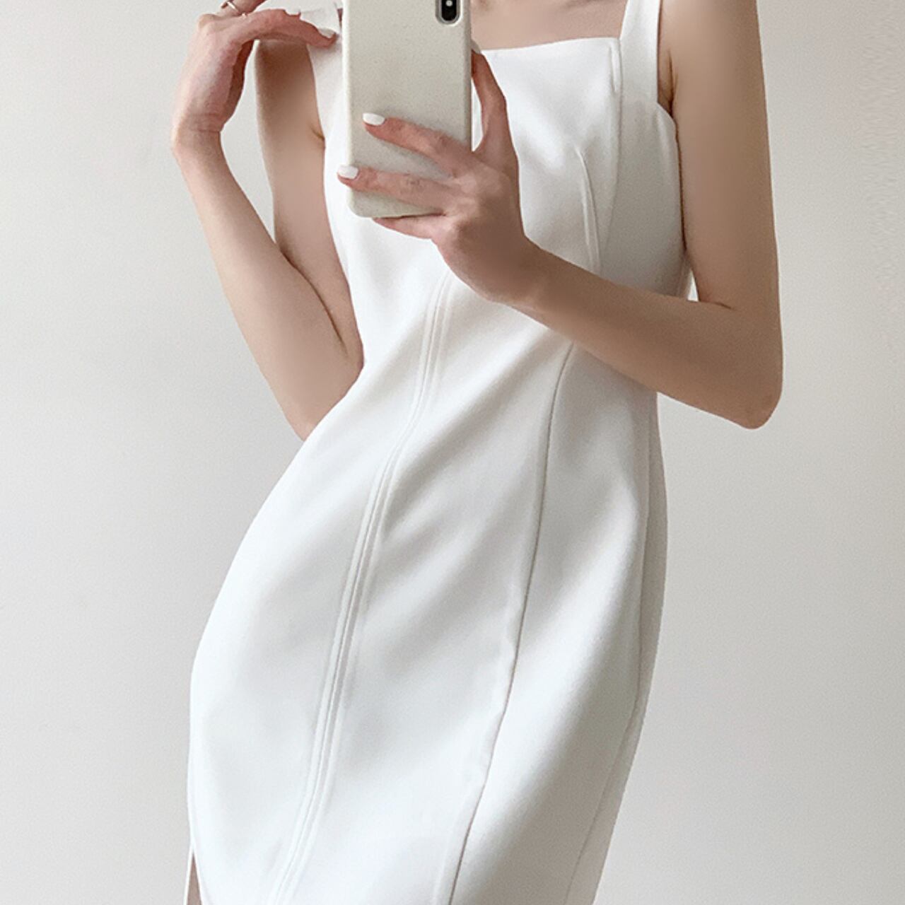 #スクエアネック #タイトワンピース #ミニワンピ #白ワンピ #スリット入り #美シルエット
