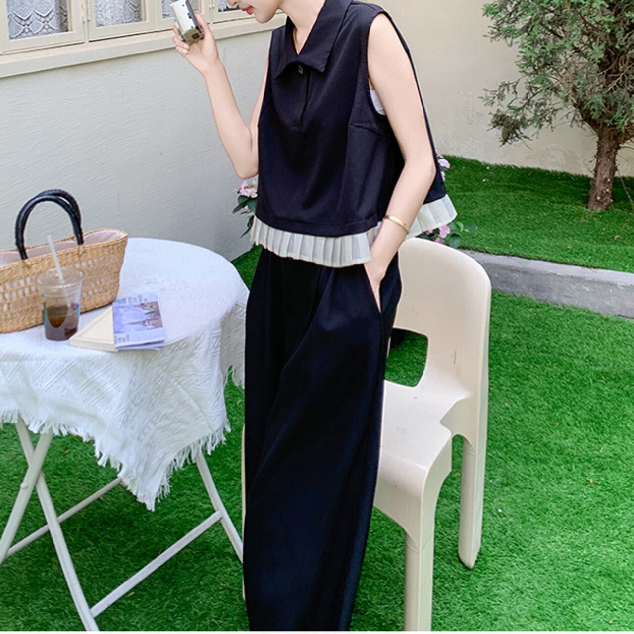 #ノースリーブトップス #ワイドパンツ #セットアップ #プリーツ切り替え #夏コーデ #リラックススタイル