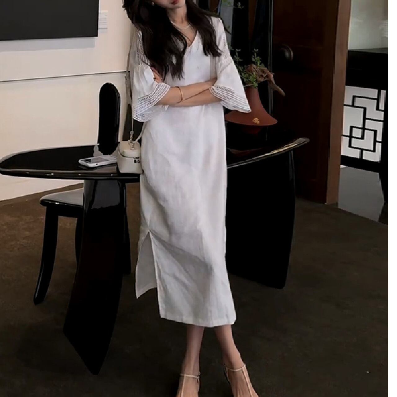 #レーススリーブ #ミモレ丈 #上品ワンピース #フェミニンスタイル #大人可愛い