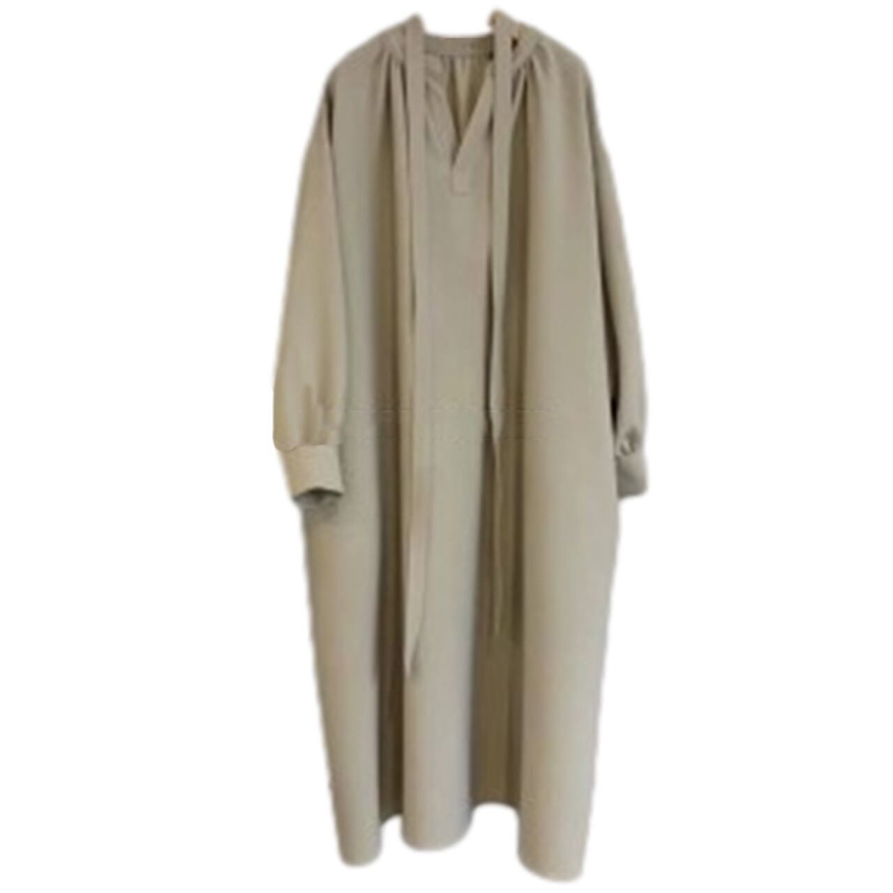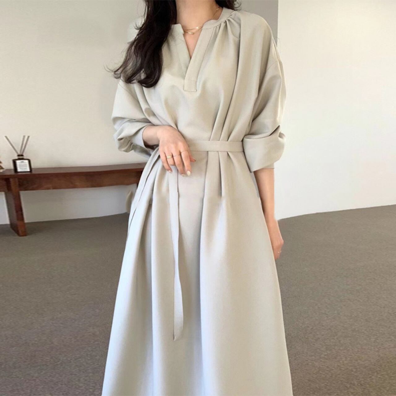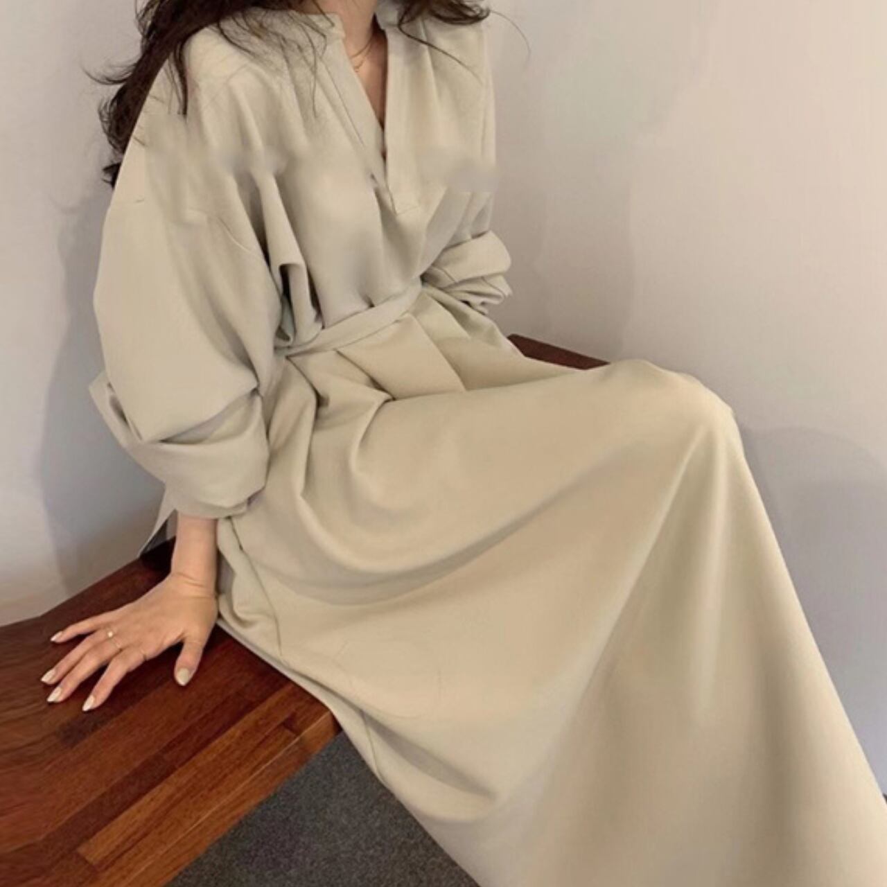 早春の新作にぴったりな、柔らかなライトベージュが上品なロングワンピース。身体のラインを拾いすぎない程よいゆとりがありつつ、ウエストベルトでメリハリをつけた美しいシルエットが魅力。シンプルでクラシックな印象なので、トレンチコートやジャケットとのレイヤードもおすすめ。デイリーから通勤スタイルまで幅広く活躍するアイテムです。
