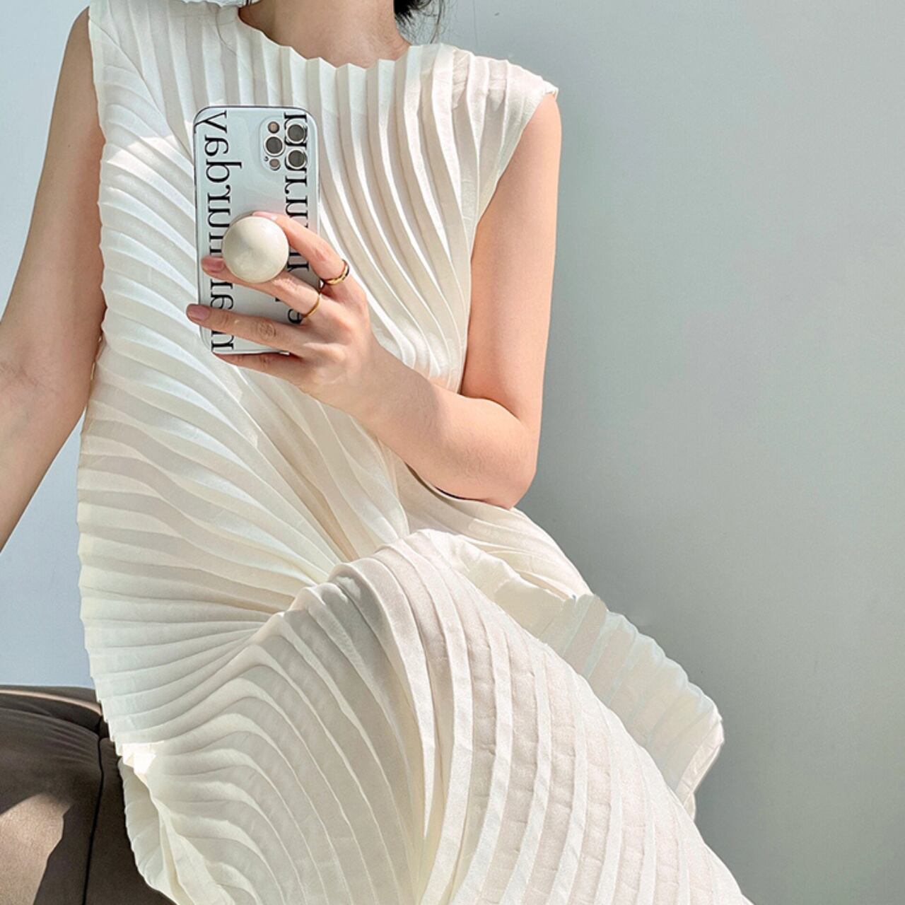 #プリーツワンピース #モードスタイル #ノースリーブ #美シルエット #きれいめコーデ