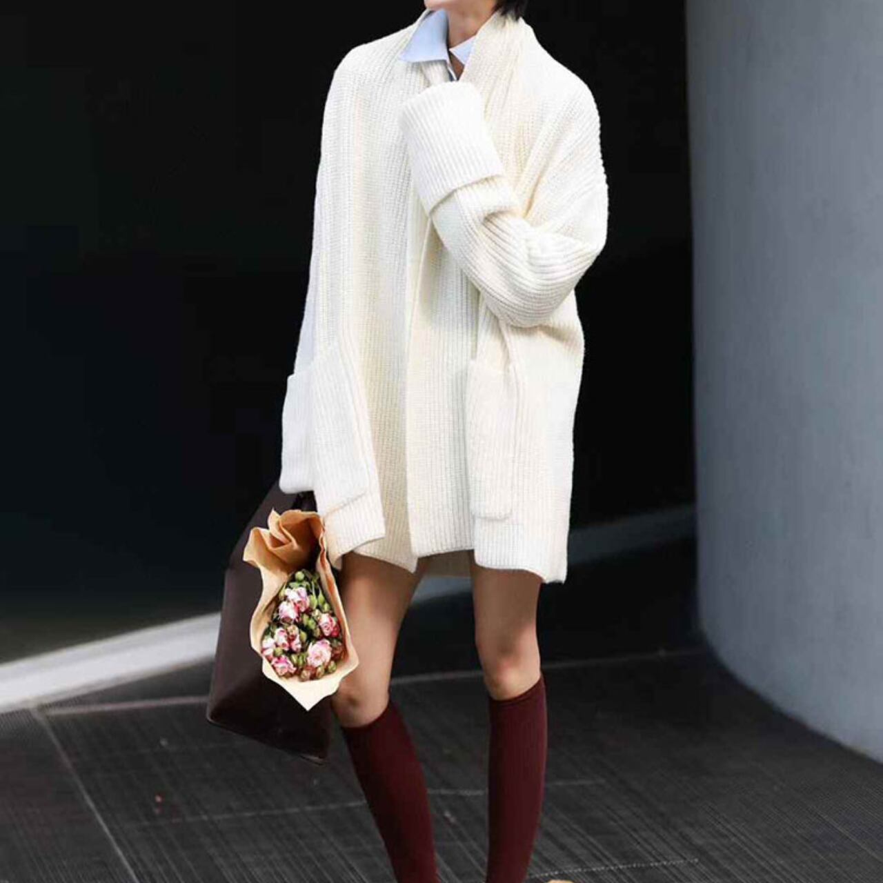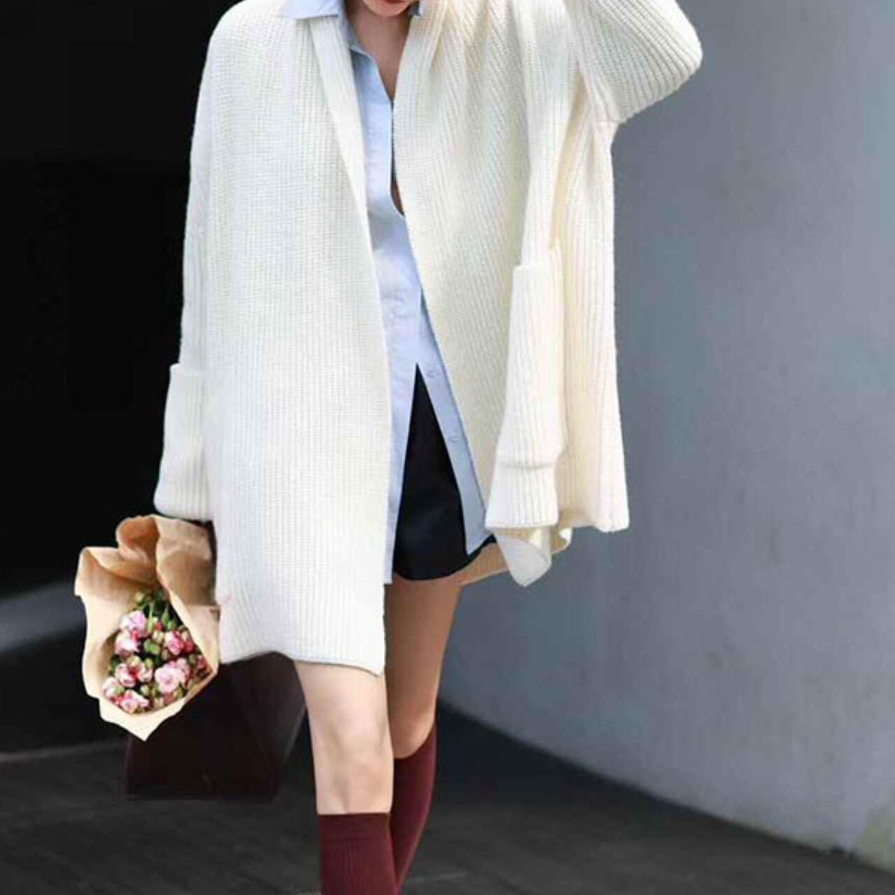 #オーバーサイズカーディガン #リブ編みニット #ポケット付き #秋冬コーデ #レイヤードスタイル