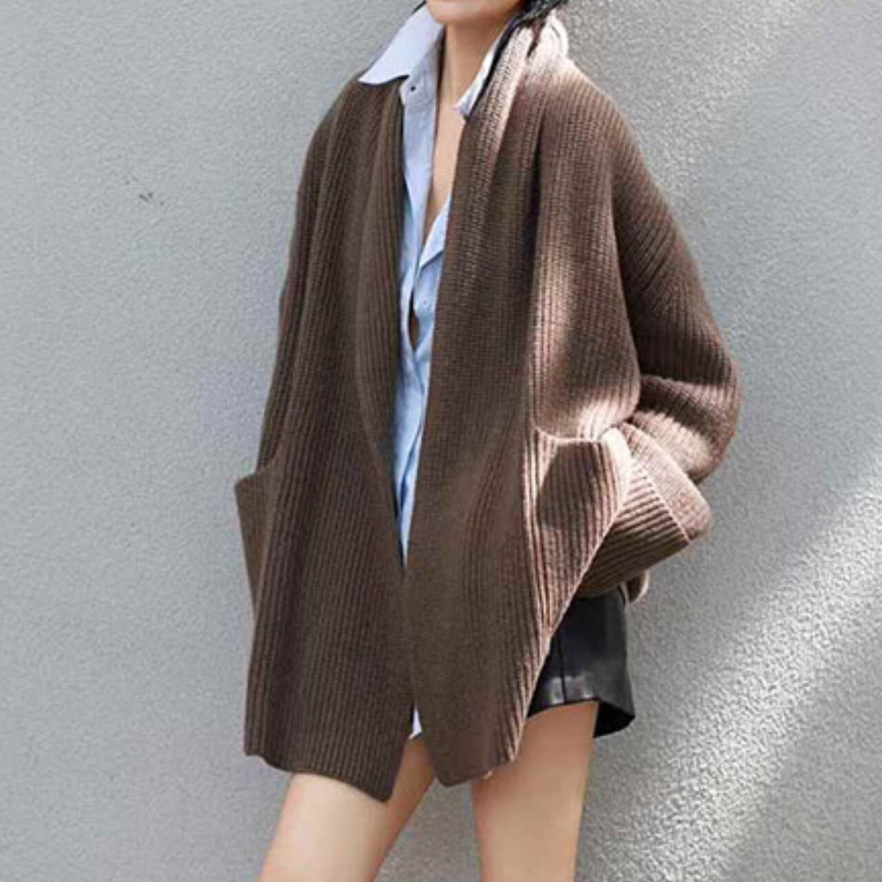 #オーバーサイズ #ゆったりカーディガン #大人カジュアル #ポケット付き #ざっくりニット #レイヤードコーデ