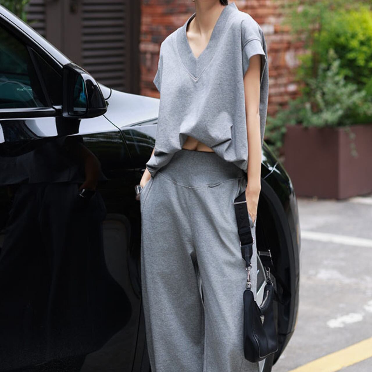 Vネックスリーブ&ワイドパンツセットアップ m0084