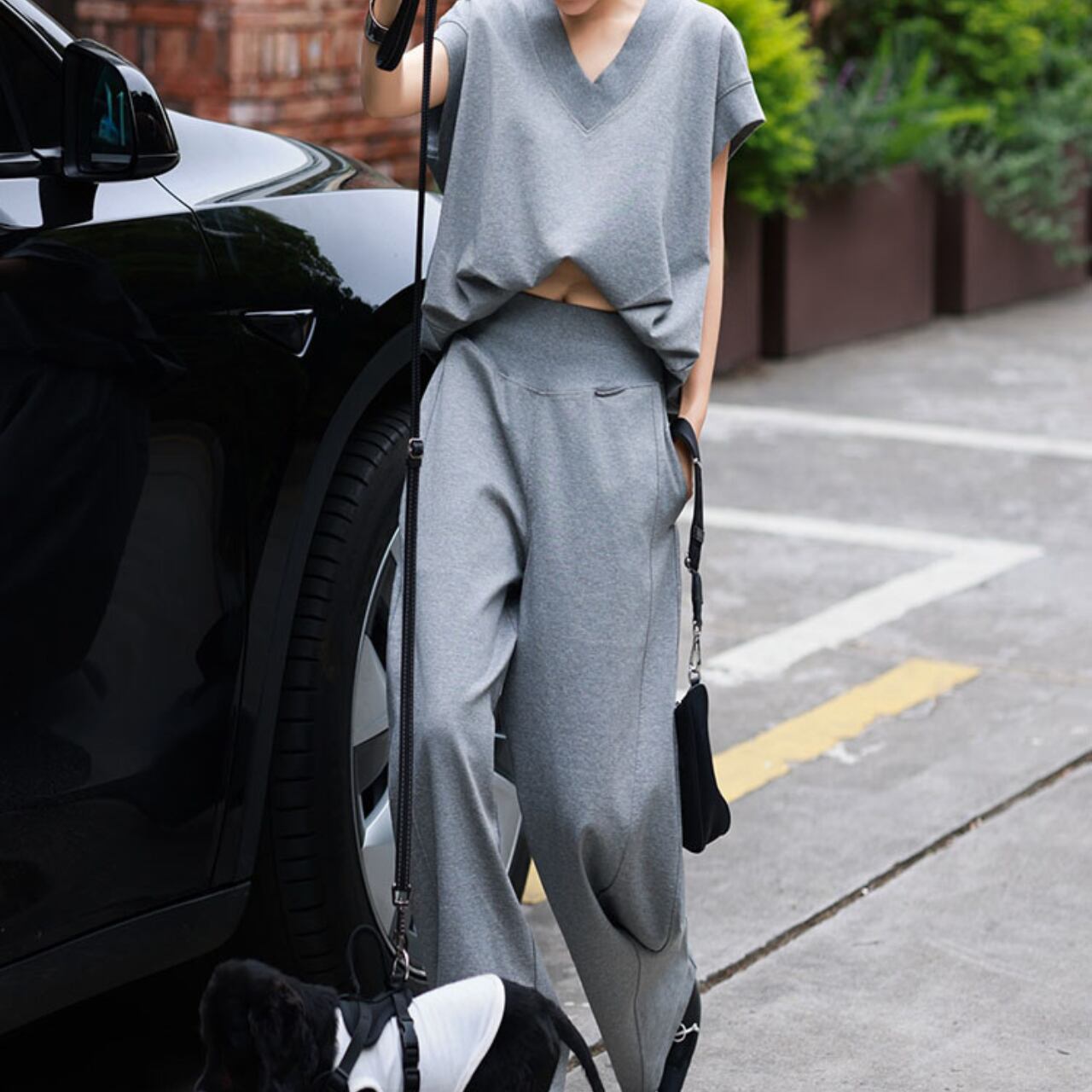 #セットアップ #Vネック #カジュアルコーデ #ドライブコーデ #ワイドパンツ #グレートーン