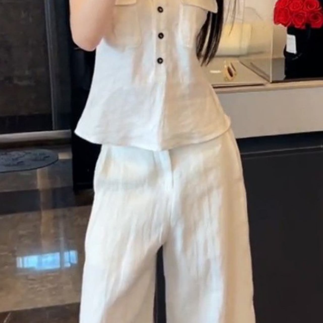 ノースリーブシャツ×ワイドパンツ セットアップ m0069